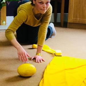 ā„ I love listening to Pat’s enthusiasm in this clip as I improvised moving, travelling and dancing along a walk way of yellow fabric on the floor (when you hear her and Mary exclaim ‘oh! very good’ I did a few quick running steps into a running-man balance). We were exploring the yellow brick road in the session and created our own pathway through the residents lounge using anything and everything yellow! We then repeated this process in the children’s classroom taking it high, low and zig-zagging it through the space before we all took explored moving along our yellow pathway together.
