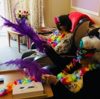 ā„ The Feather Extrazanga! – this was an impromptu one off session with the residents full of carnival colours, floating feathers and a parrot. Using Samba tunes and classics to get residents shaking their tail feathers, we played, danced, dressed up and were transported to the streets of Rio with our mini carnival…