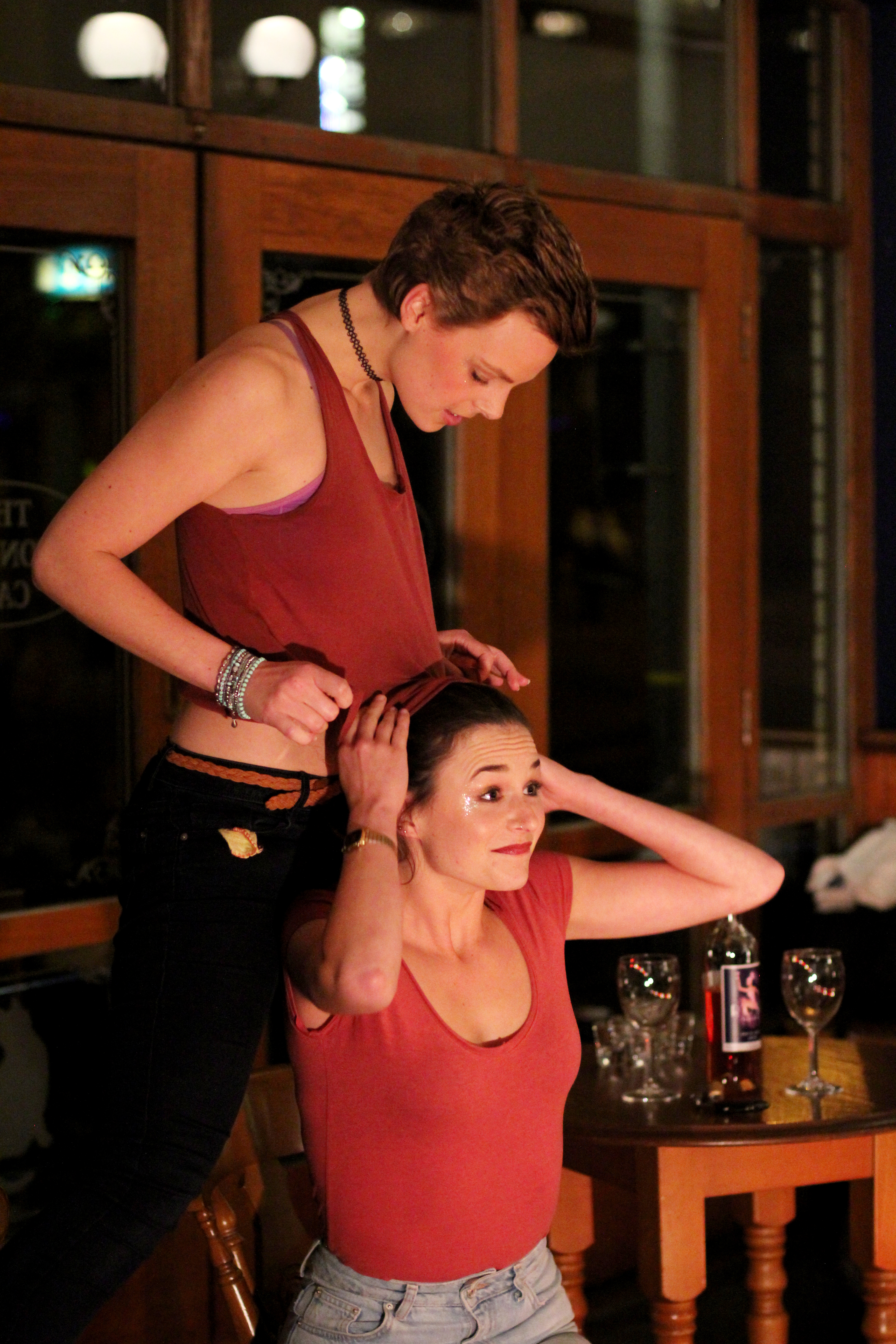 Top Me Up is a two woman night on the town binge drink show celebrating the freedom and opportunity for reckless abandonment inherent in being a childless and comparatively care free young adult.