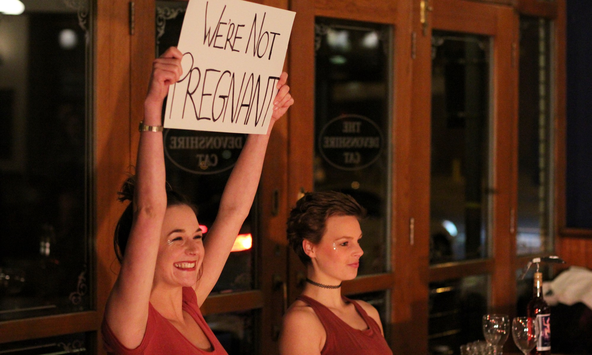 The show is about binge drinking, friendship and having a great time. It’s also about rejecting the societal pressures telling you, as a woman in your 20’s and early 30’s to have children. Performed in a pub, it is a show that verges on becoming a night out.