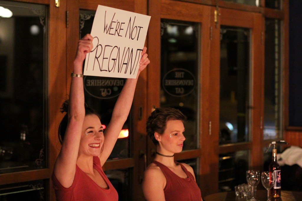 “Thought provoking, but more importantly hilarious – two women weighing up motherhood while having a night out with friends featured live drinking, excellent contemporary dance & a rain of condoms being thrown into the audience” – The State Of The Arts