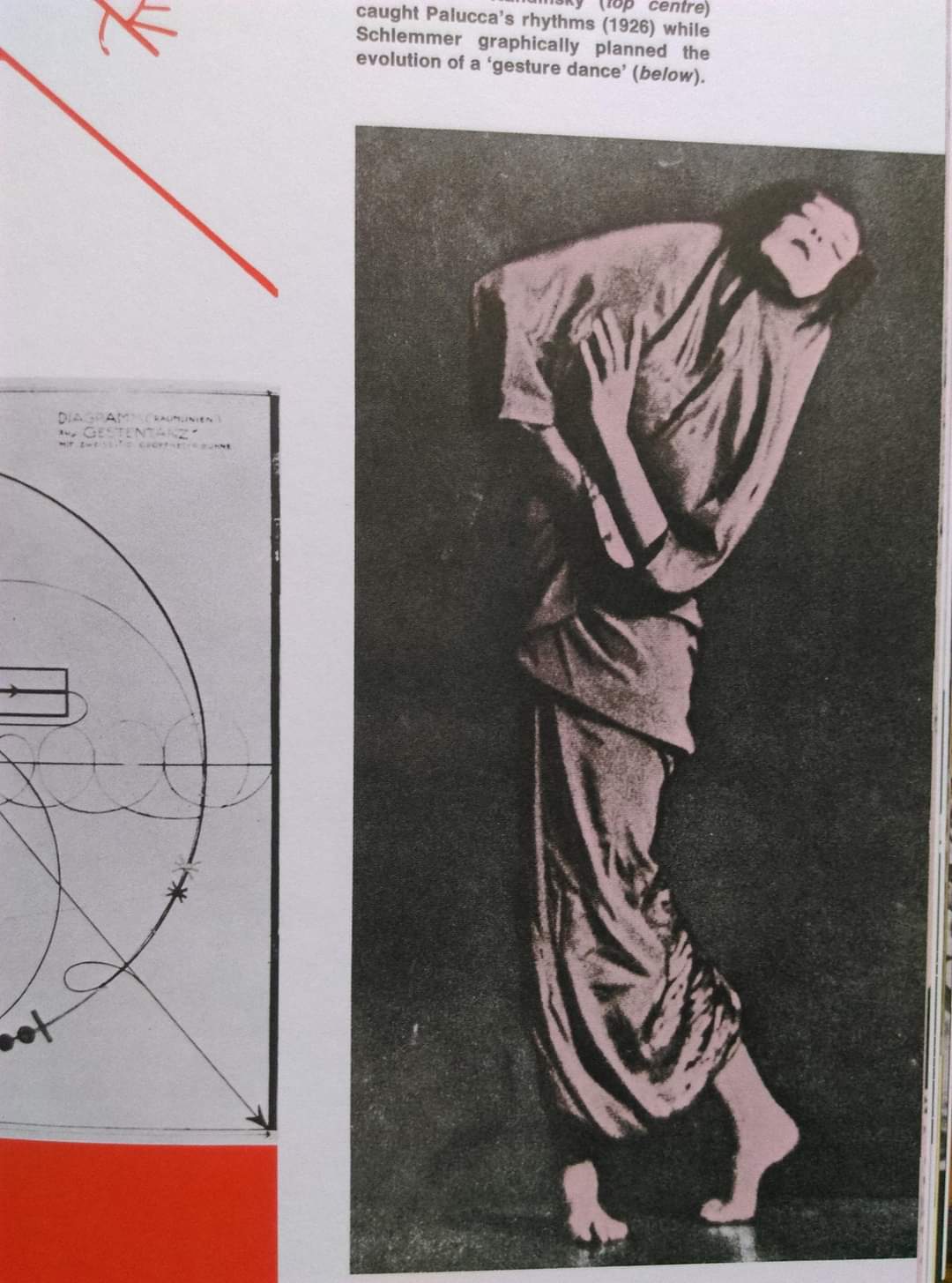 ‘Bauhaus Buhnenchor’ explored chorus-lines, avant garde aesthetics, body culture and took inspiration from the Weimar-era culture, particularly the Bauhaus. We lifted 5 images in total from a variety of books exploring these themes and translated them onto the body. You can see the transition from page to body to performance.