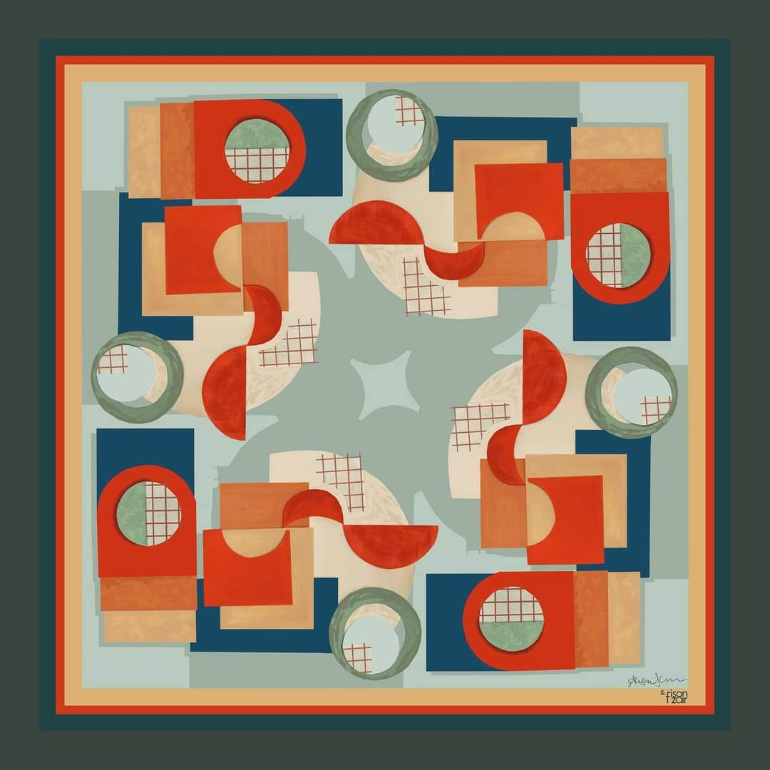 Inspired by the Bauhaus the scarfs were designed by Fison Zair (who also makes fantastic earrings) to support the performance and development of this work in collaboration with Allie.