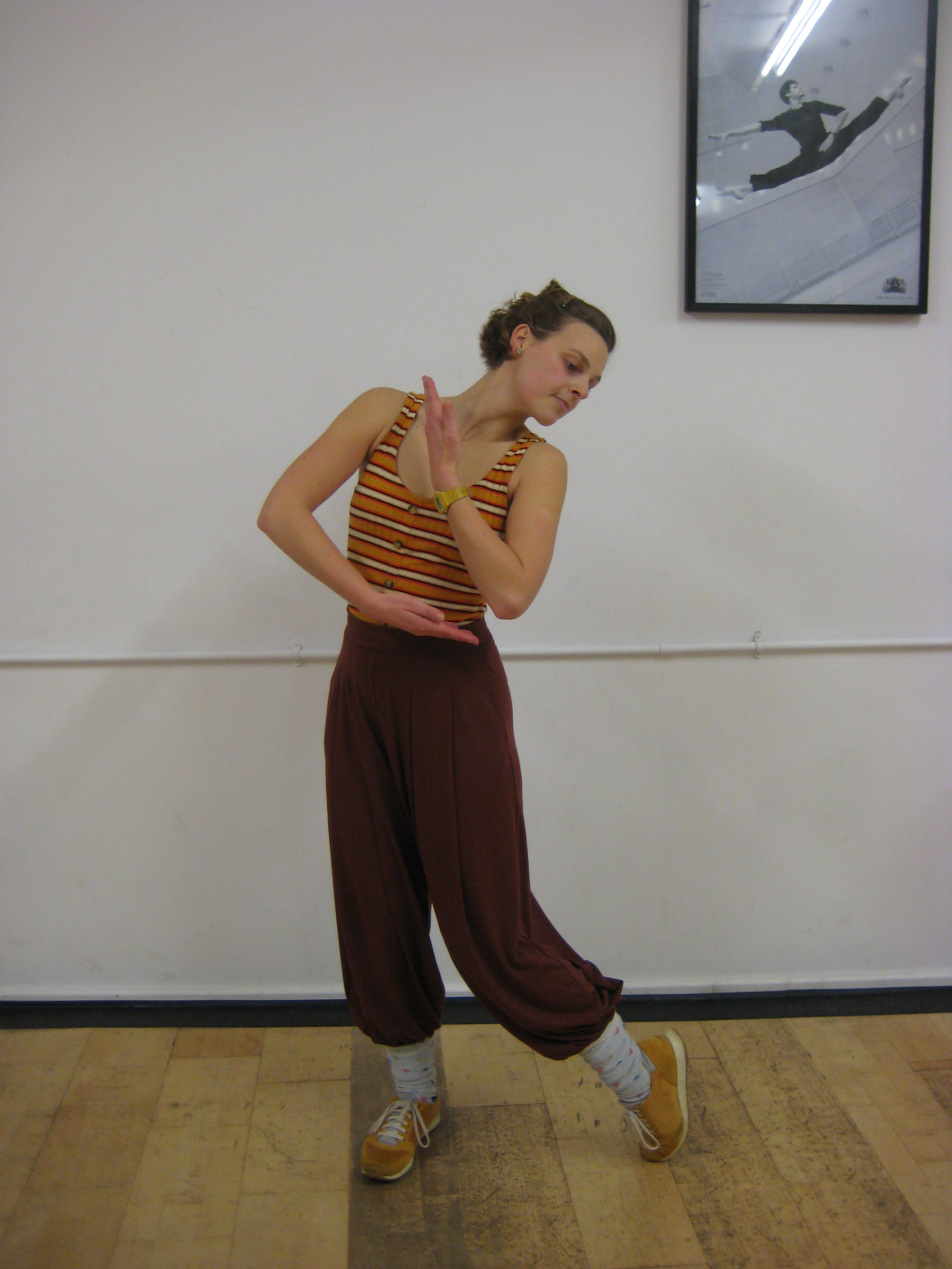 As well as the poses, we also took inspiration from images of people leaping and jumping in the grounds at the Bauhaus and included a section in the piece of us leaping freely across the stage.