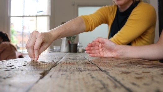 Originally created as a short playful duet on two chairs by Lucy and Tara, the piece was inspired by table etiquette, shared moments and movement manipulation with everyday objects. Performing a series of gestural movement patterns set to the hypnotic track Won’t Wash by pop Artist Hot Chip, the piece was developed through residencies at Yorkshire Dance in Leeds and Access Space in Sheffield.